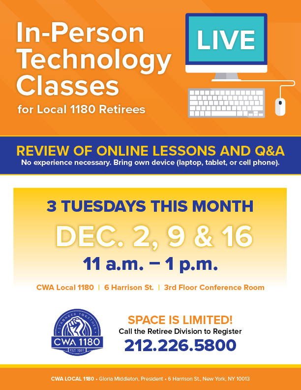 Join us for an in-person session on the new prescription drug plan taking effect Jan. 1, 2026, for all Medicare-eligible Local 1180 retirees. We encourage all eligible retirees and dependents to attend and get a clear understanding of the upcoming changes.